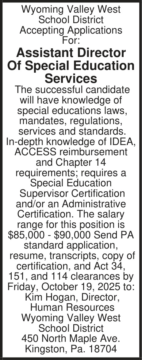 Assistant Director of Special Education Services Job Opening in Kingston, PA