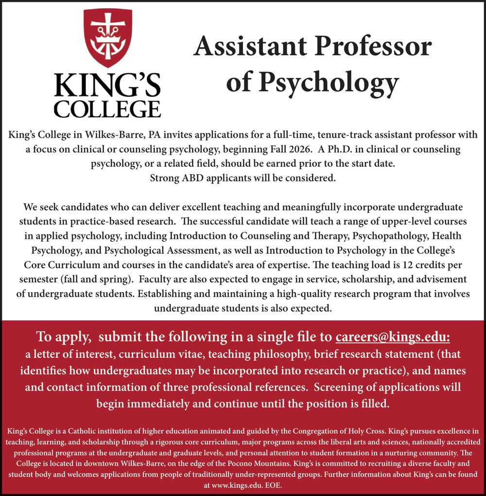 Nov 26, 2025. King's College Education Jobs from Wilkes Barre Careers