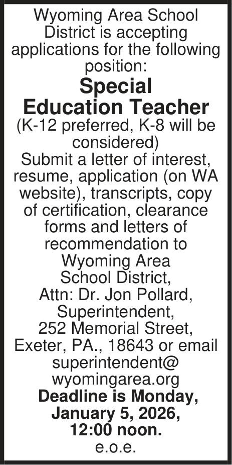 Dec 19, 2025. Wyoming Area School District Education Jobs from Wilkes Barre Careers