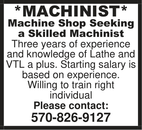Machinist Job Opportunity in Wilkes Barre, PA