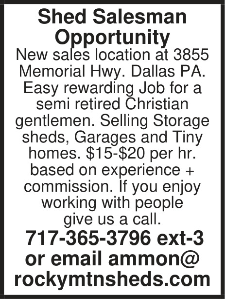 Shed Salesman Job Opening in Wilkes-Barre, PA
